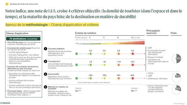 “En tant que cabinet de conseil de direction générale actif et engagé dans le secteur du tourisme et sur les problématiques de développement durable, Roland Berger tenait à développer avec Evaneos, acteur reconnu du tourisme à impact, cet Index du Surtourisme. L’ambition est véritablement d’en faire un outil d’aide à la décision pour les acteurs de la filière et de progressivement l’améliorer en réalisant des zooms plus locaux, voire en intégrant de nouvelles dimensions, comme la redistribution économique des revenus du tourisme.” déclare Claire Pernet, associée chez Roland Berger.